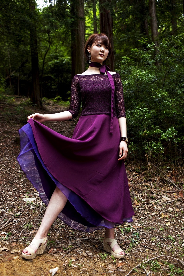 身頃にはレース、スカートのインナーにはオーガンジーをたっぷりと使用した大人のドレス。